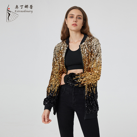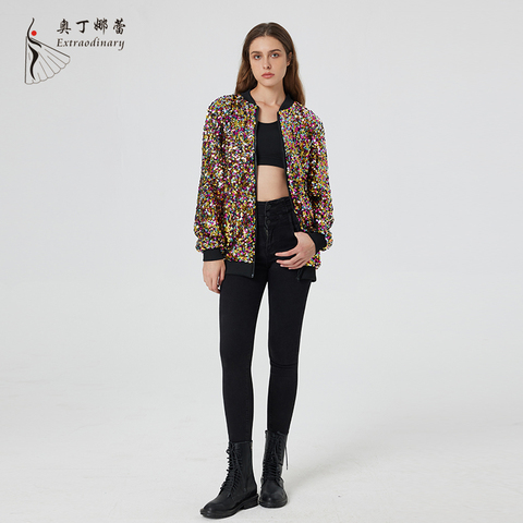女性スパンコール多色冬のコートジッパーチブド襟カフスブレザーボンバージャケット